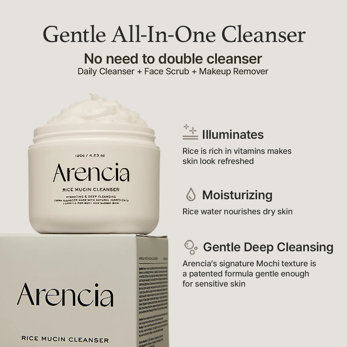 A multi-functional cleanser that combines a daily cleanser, face scrub, and makeup remover in one. Enjoy an effortless and effective skincare routine with Arencia’s signature Mochi texture for a deep yet gentle cleansing experience.