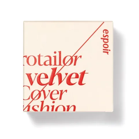 ESPOIR Pro Tailor Be Velvet Cover Cushion SPF34 PA++ is a high-coverage Korean makeup cushion foundation that helps even out skin tone and conceals imperfections. The full, strong coverage leaves a comfortable finish on the skin that does not feel dry or cakey. With a sapphire powder, this makeup cushion has velvety, matte texture that lasts for long durations, keeping your skin looking flawless without smudging or clumping.