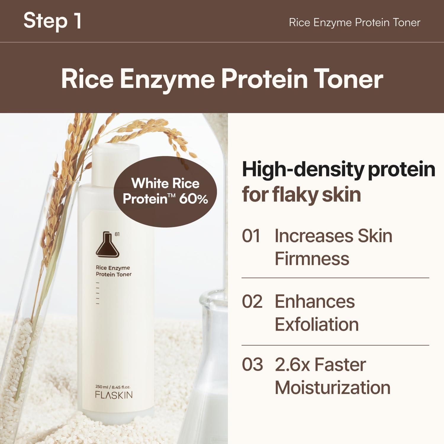 This toner helps improve skin density with rich Rice Protein.