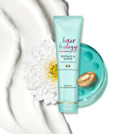 The light and gentle hair biology Meno Balance Revitalize & Soothe conditioner soothes your dry hair, provides moisture and shine and protects the hair volume. Discover the Hair Biology Meno Balance care range, which is tailored to the biological needs of women in menopause.