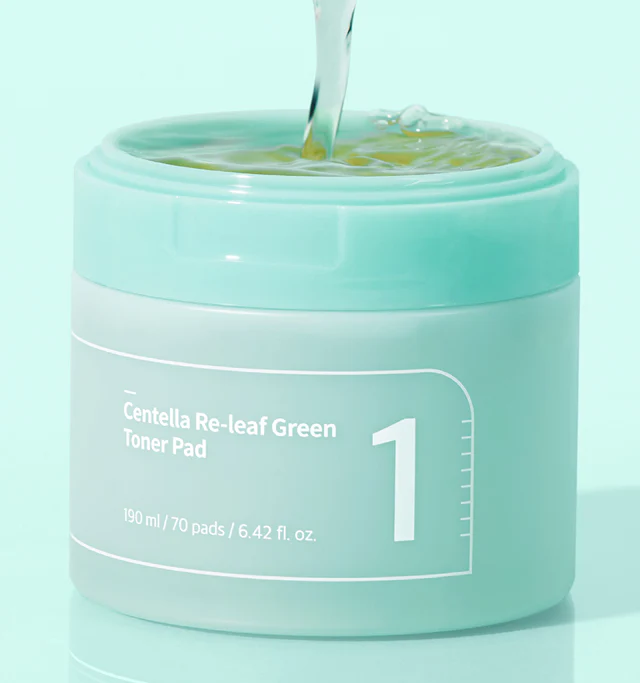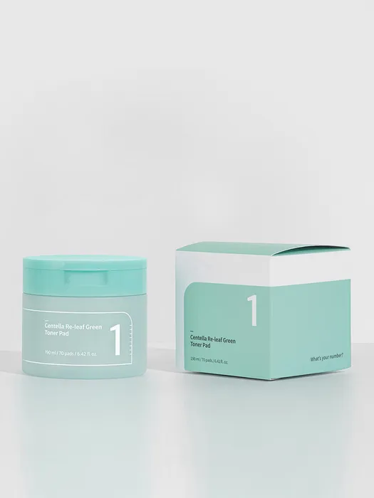 Numbuzin No.1 Centella Re-leaf Green Toner Pad concentrates on soothing redness and calming irritation with herbal extracts.